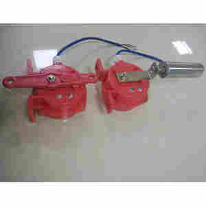 兩級跑偏開關安裝在皮帶輸送機兩側、距離皮帶機首尾端部1~3m的地方。當皮帶跑偏時,皮帶邊緣壓向檔輪,迫使檔輪偏轉,使限位開關動作。為減少檔輪與皮帶的摩擦,檔輪的本體是由軸承制作的。 當發生輕微跑偏事故時(12°),兩級跑偏開關的組觸點動作,發出事故預告信號。 當發生嚴重跑偏事故時(30°),兩級跑偏開關的第二組觸點動作,可使輸送機自動停車。